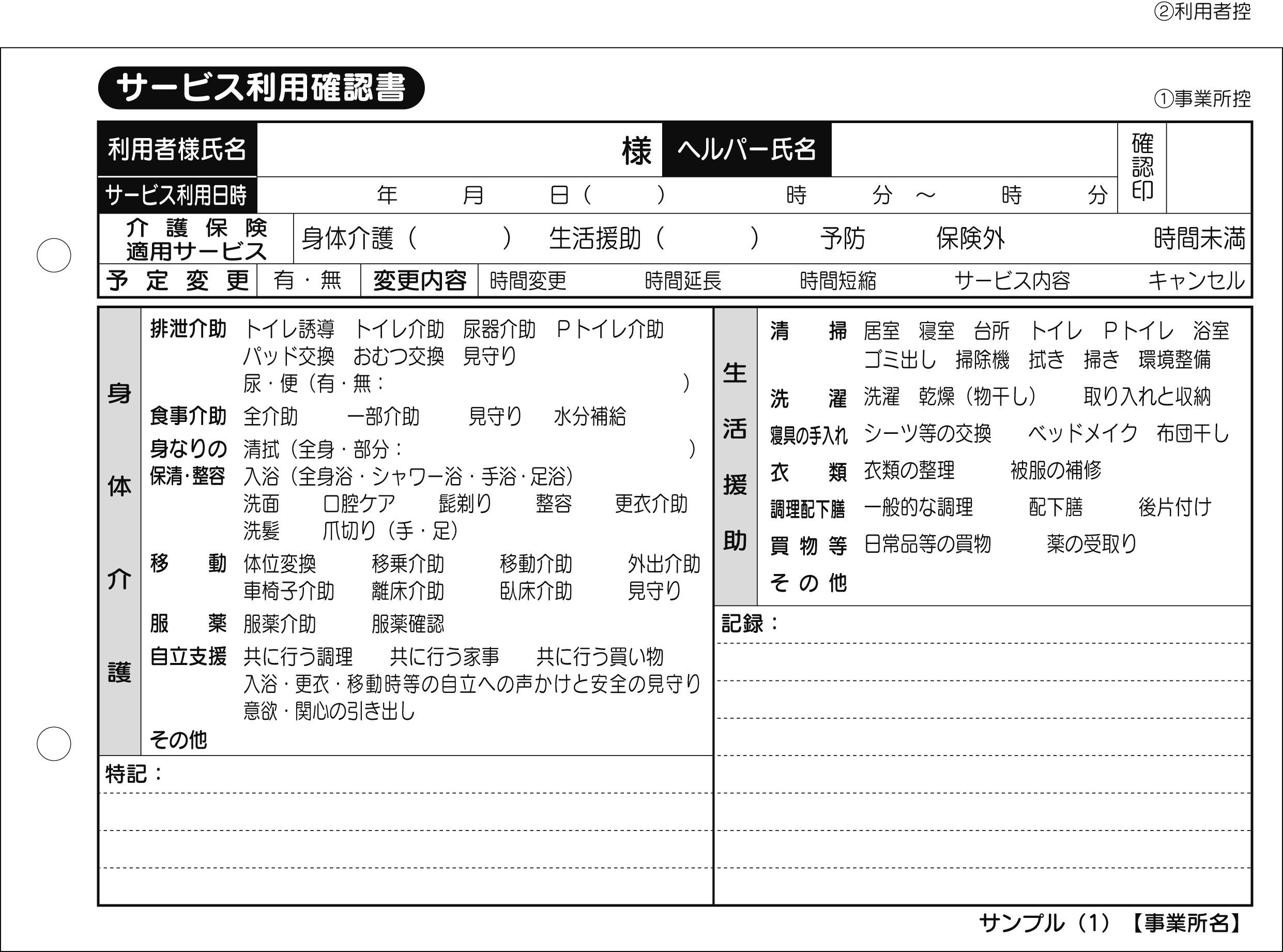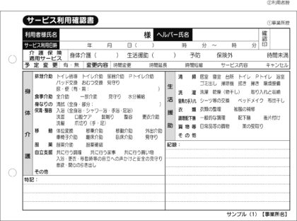 [品名]: サービス利用確認書/介護記録サンプル(1)