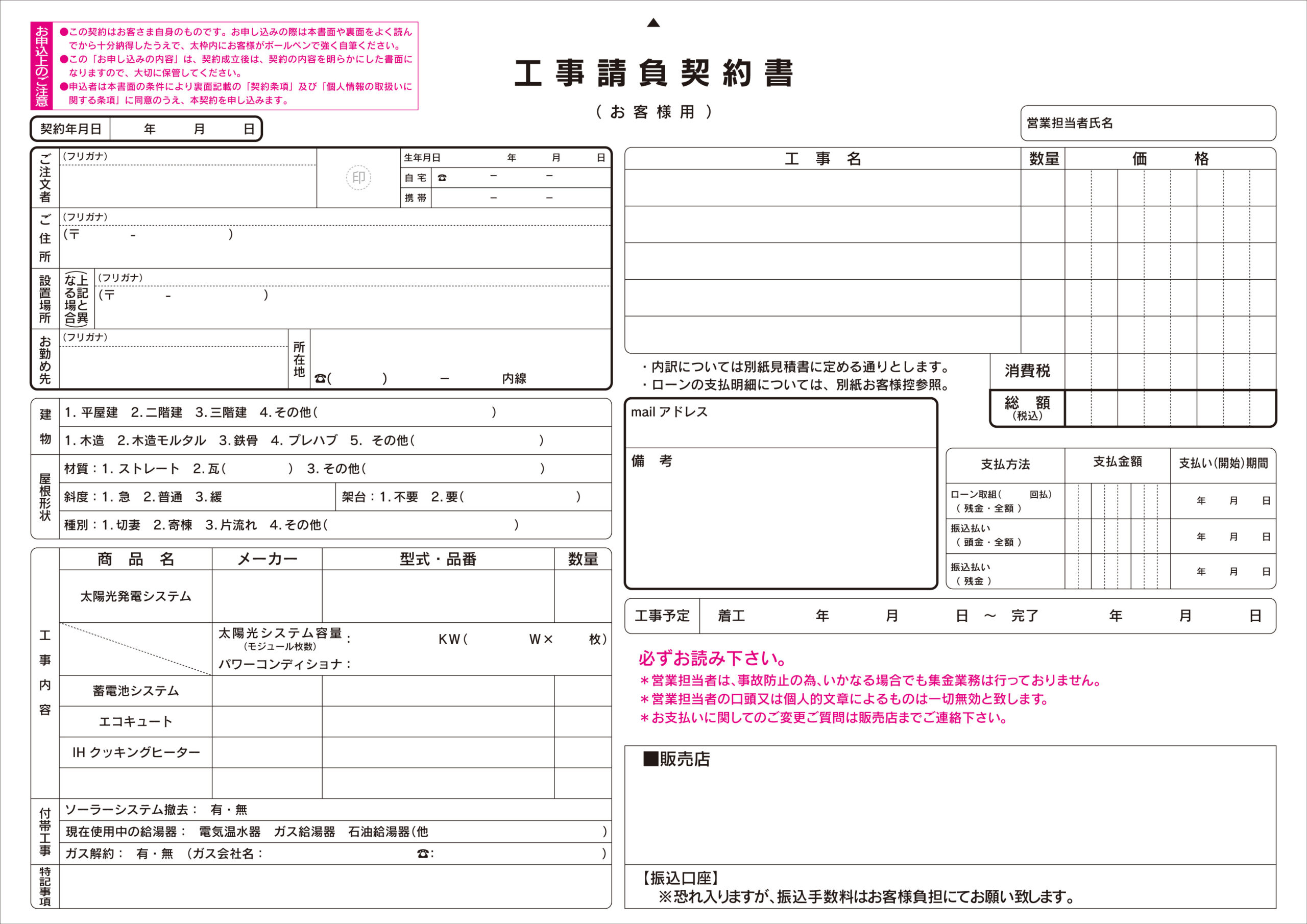 <工事請負契約書/契約書サンプル(3)、A4サイズ2枚複写伝票>複写枚数、サイズ変更可