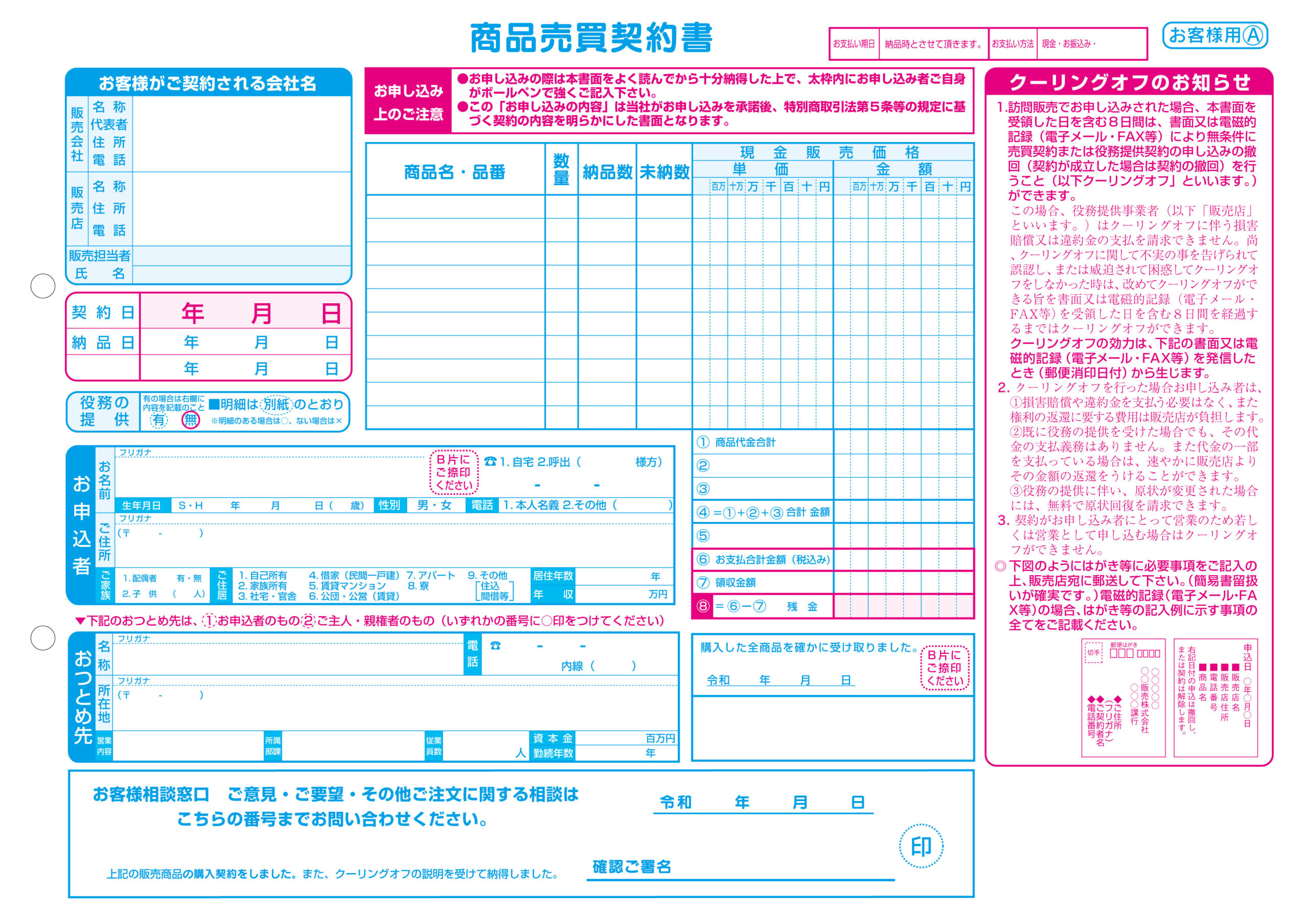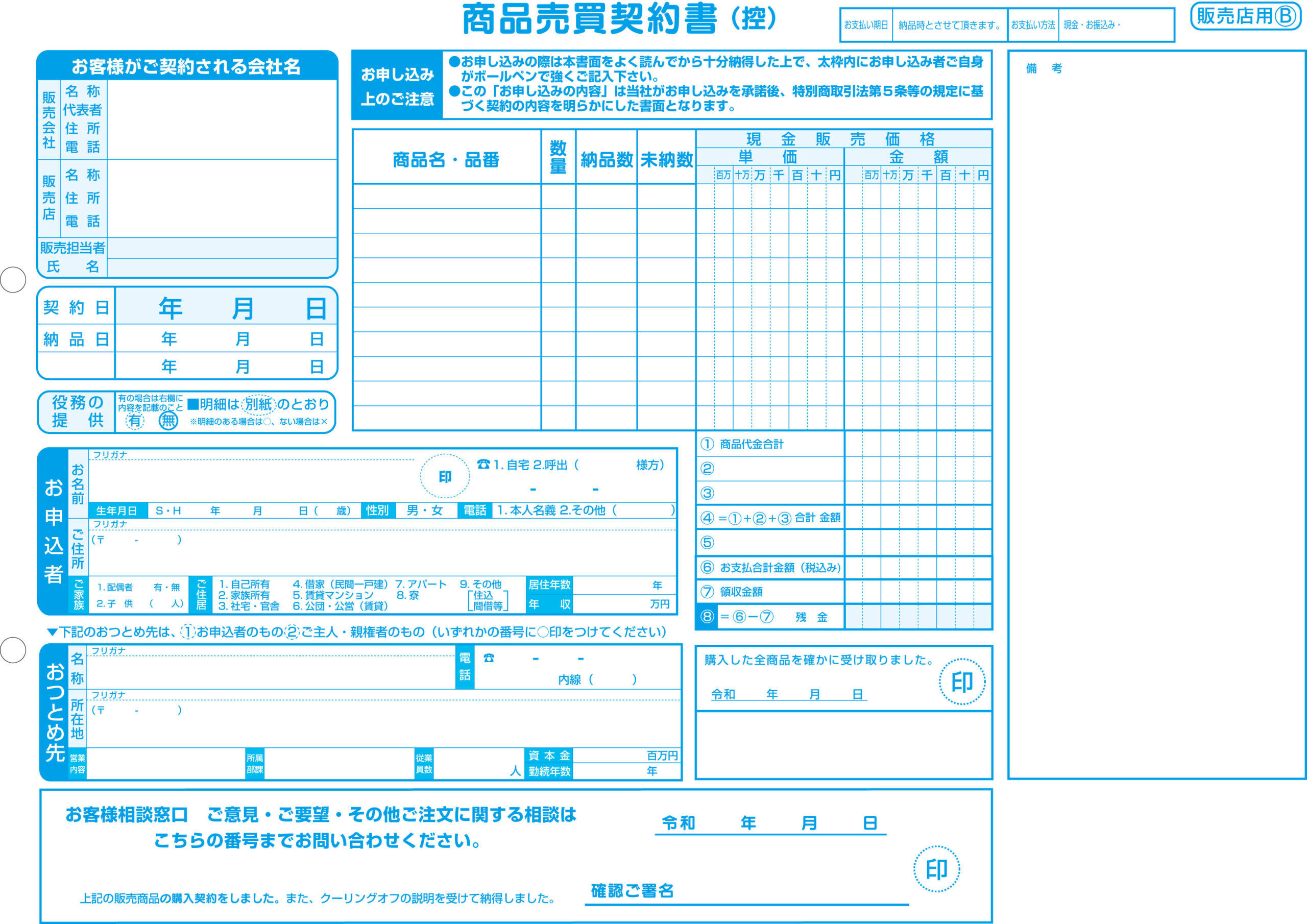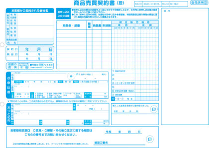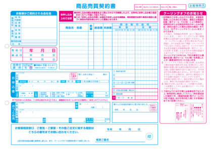 <商品売買契約書/契約書サンプル(5)、A4サイズ2枚複写伝票>複写枚数、サイズ変更可