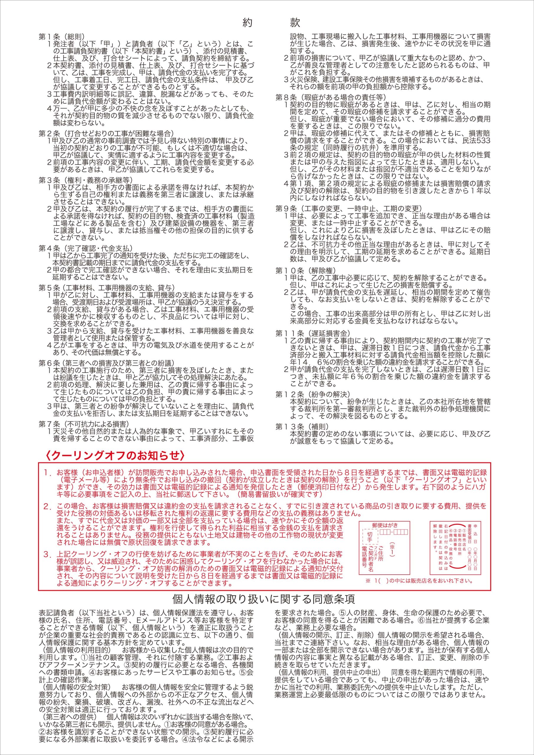 ・約款の内容に関しましてはあくまで弊社サンプルとなります。