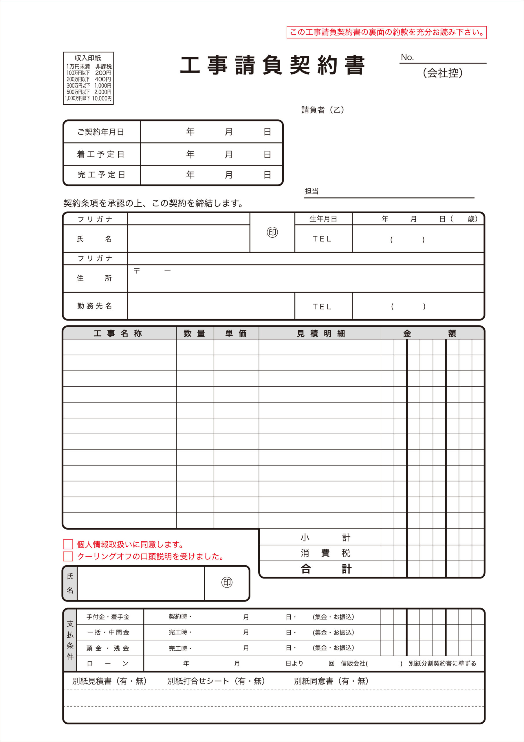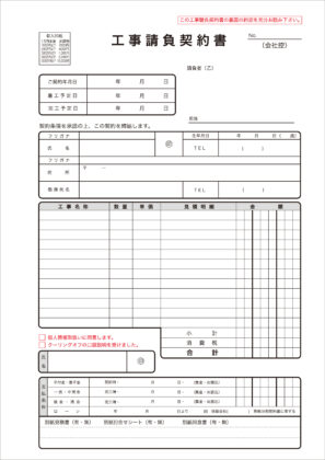 <工事請負契約書/契約書サンプル(12)、A4サイズ2枚複写伝票>複写枚数、サイズ変更可