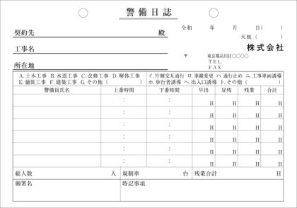 <警備日誌(1)、B6サイズ2枚複写伝票>複写枚数、サイズ変更可